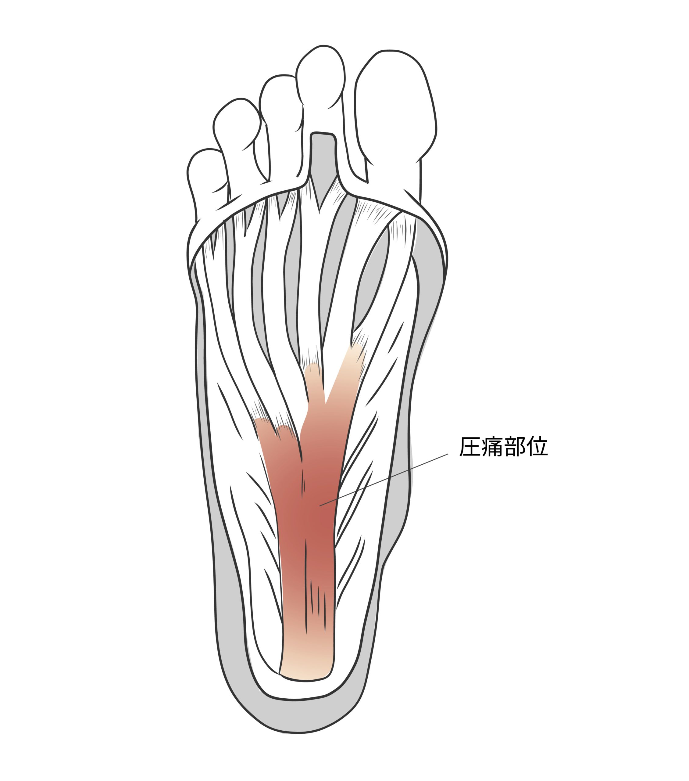 足底腱膜とは、かかとから足の指まで伸びている、足裏の丈夫な組織です。