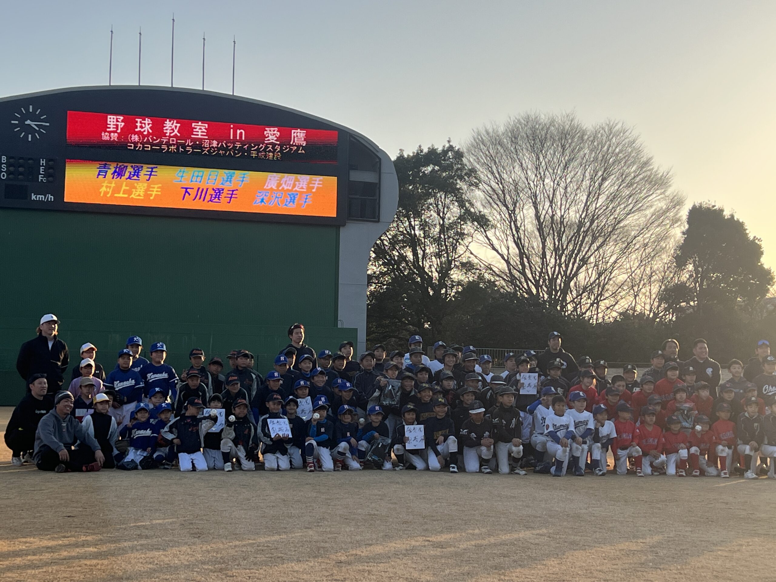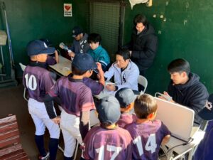 少年野球チーム向け野球教室が開催され、